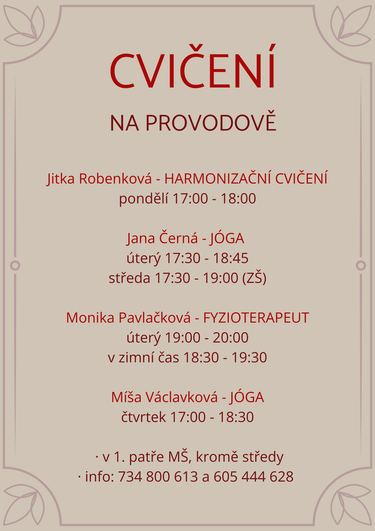 Přehled cvičení.