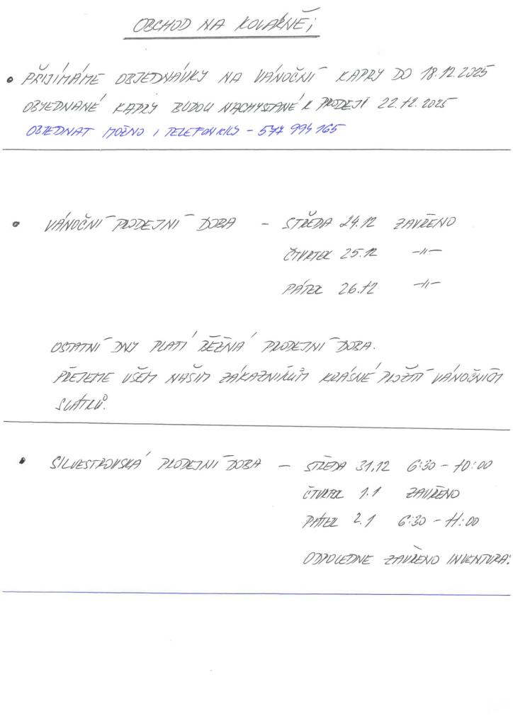 Obchod Na Kovárně - vánoční otevírací doba 1