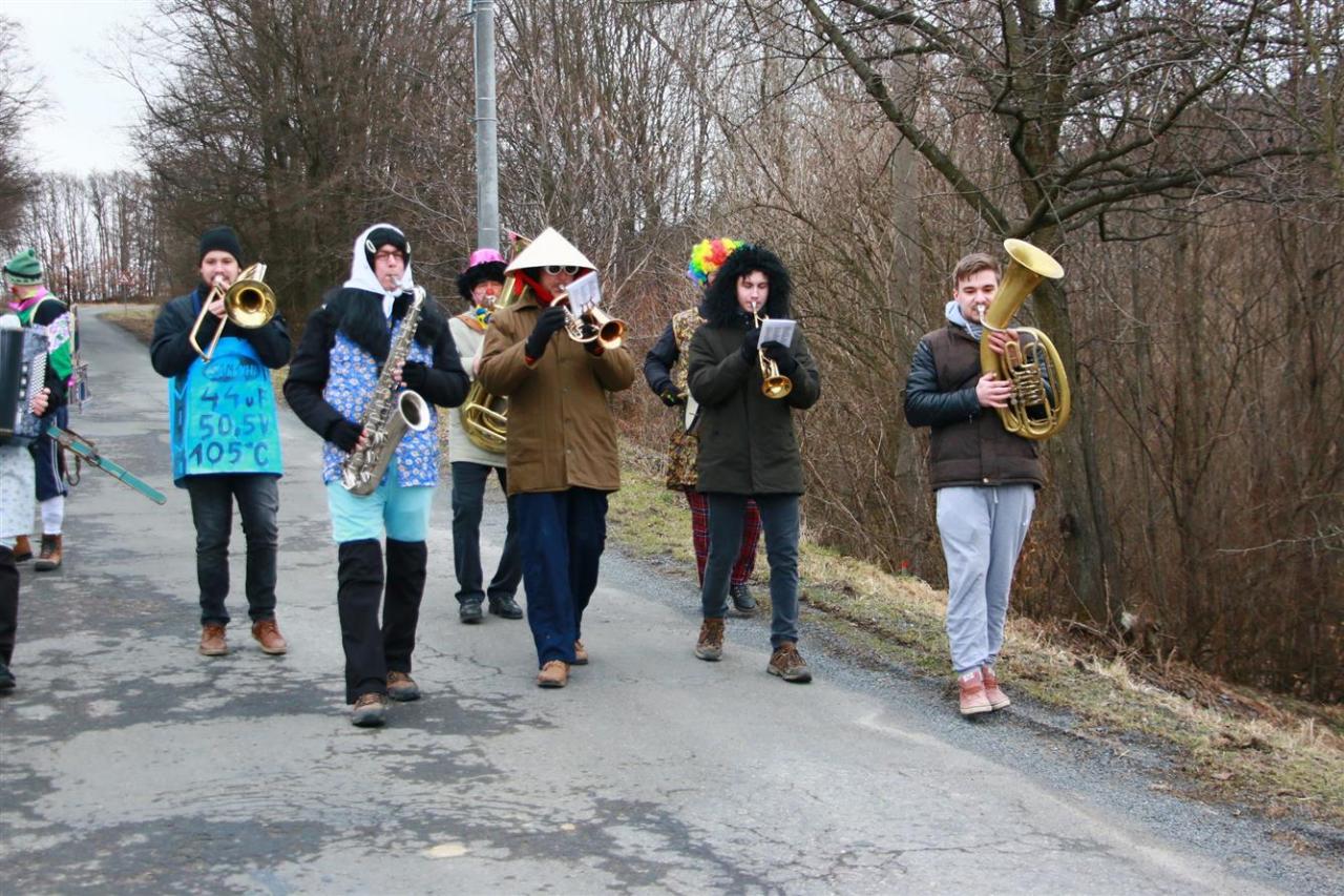 průvod muzikantů a masek