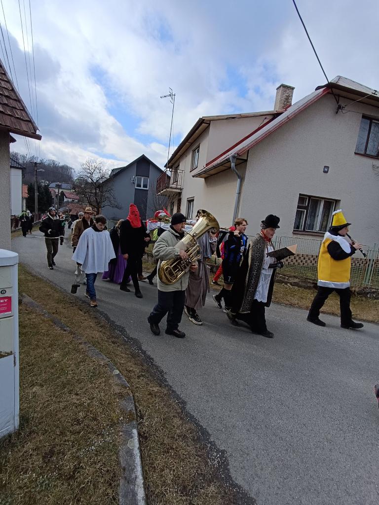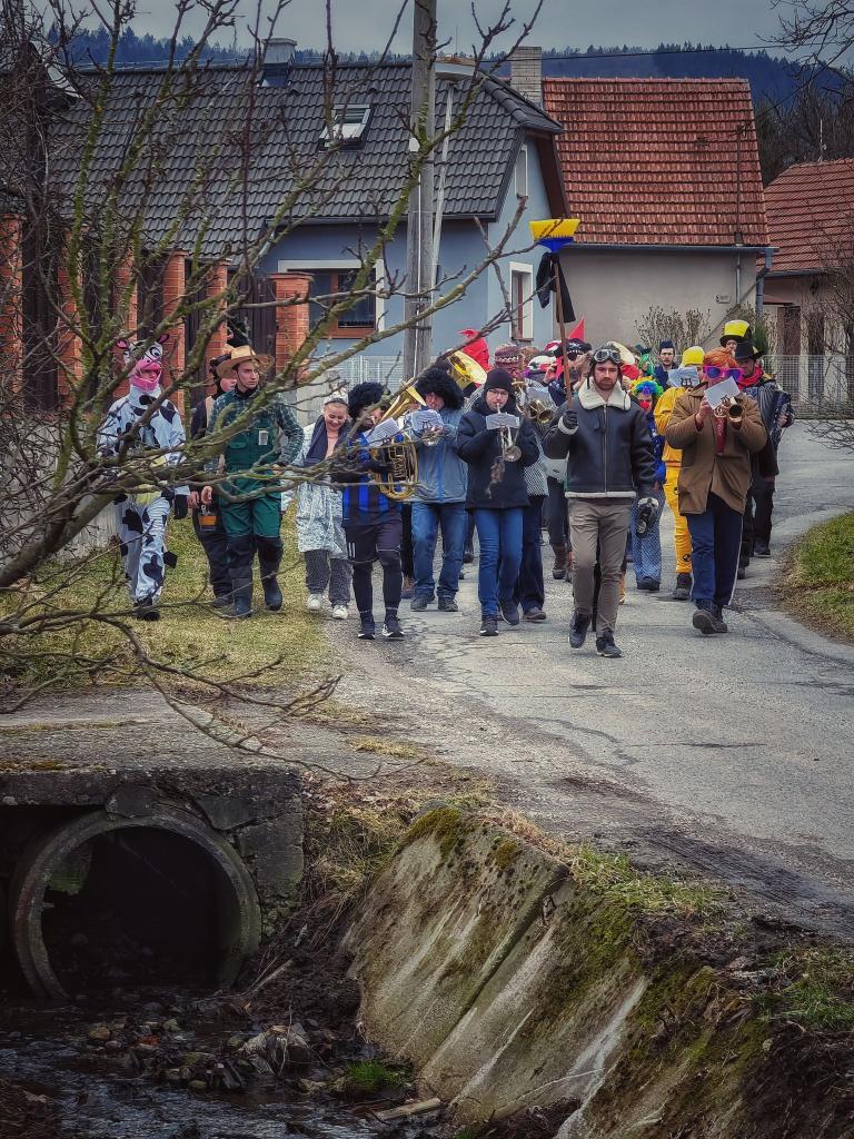 tradiční končinový (fašaňkový/masopustní) průvod po dědině s basú