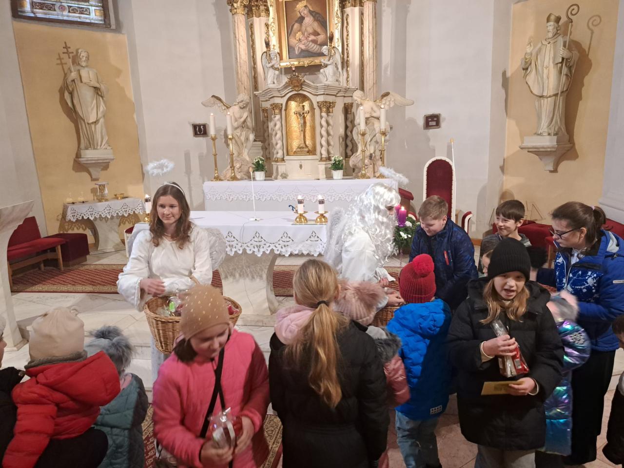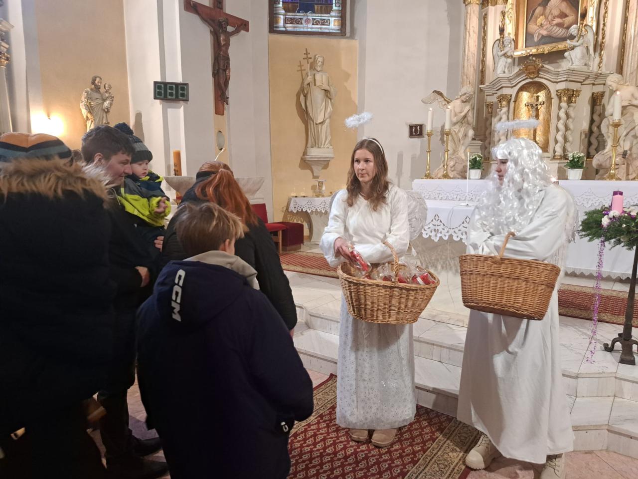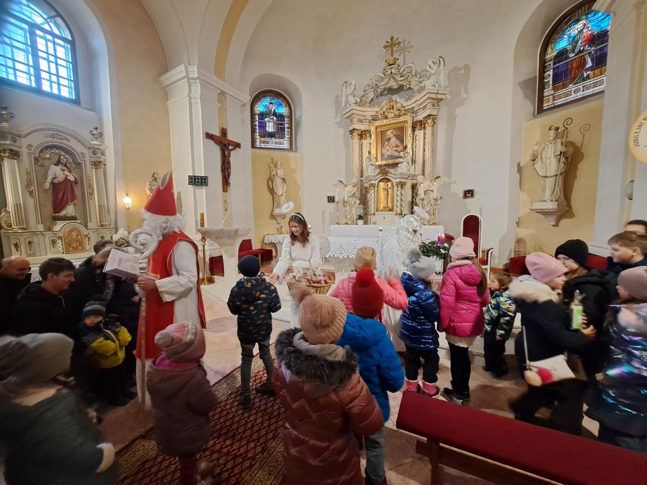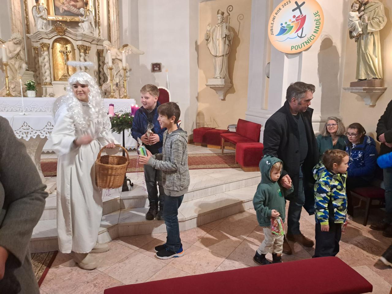 tradiční návštěva Mikuláše s družinou v kostele, kterou pořádá farnost