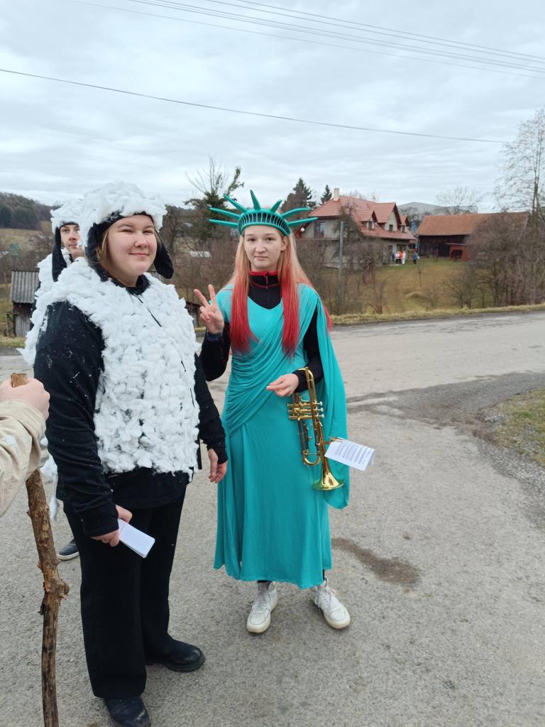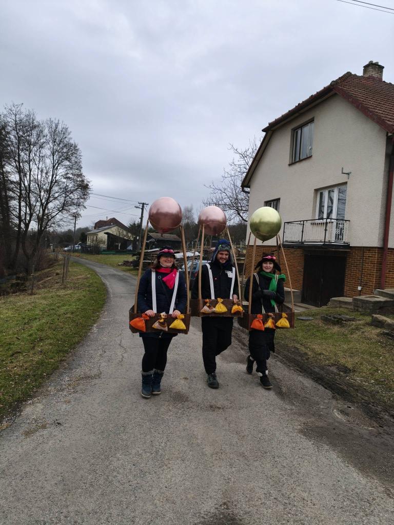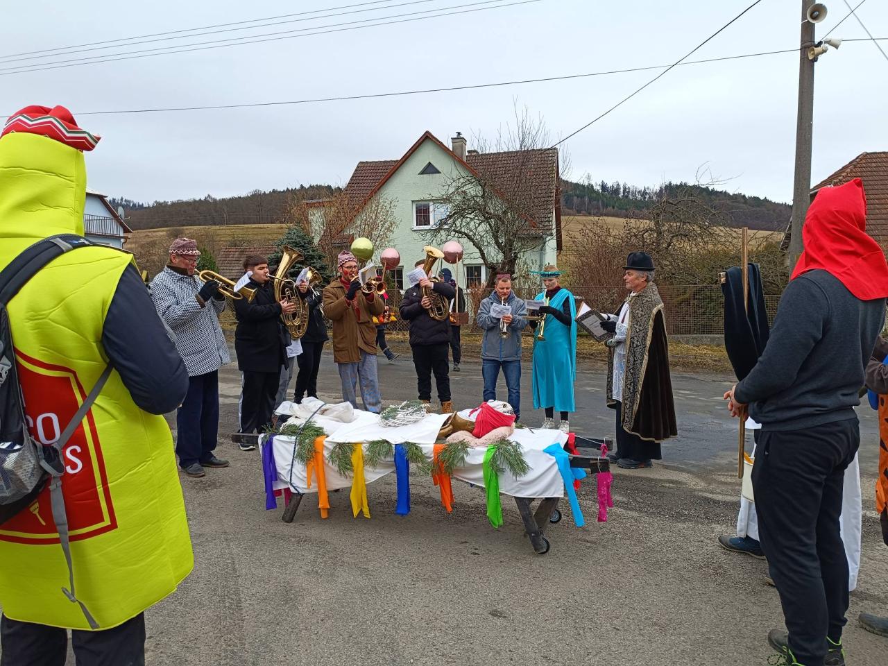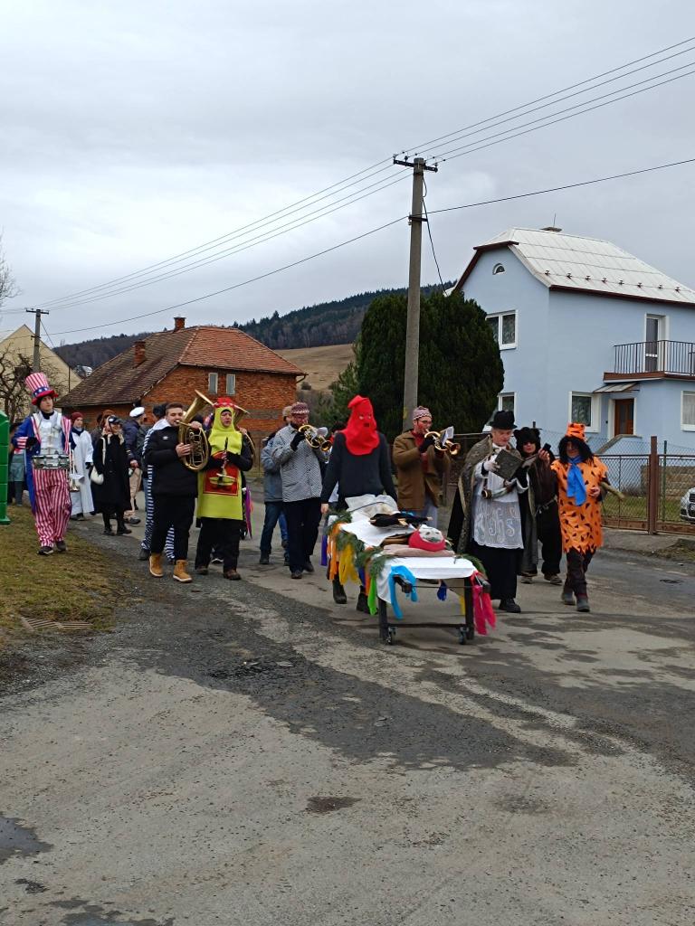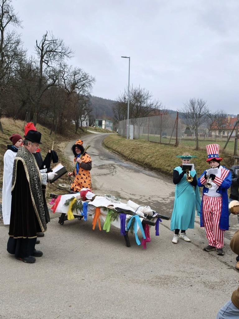 končinový průvod s nebožkou basou po dědině